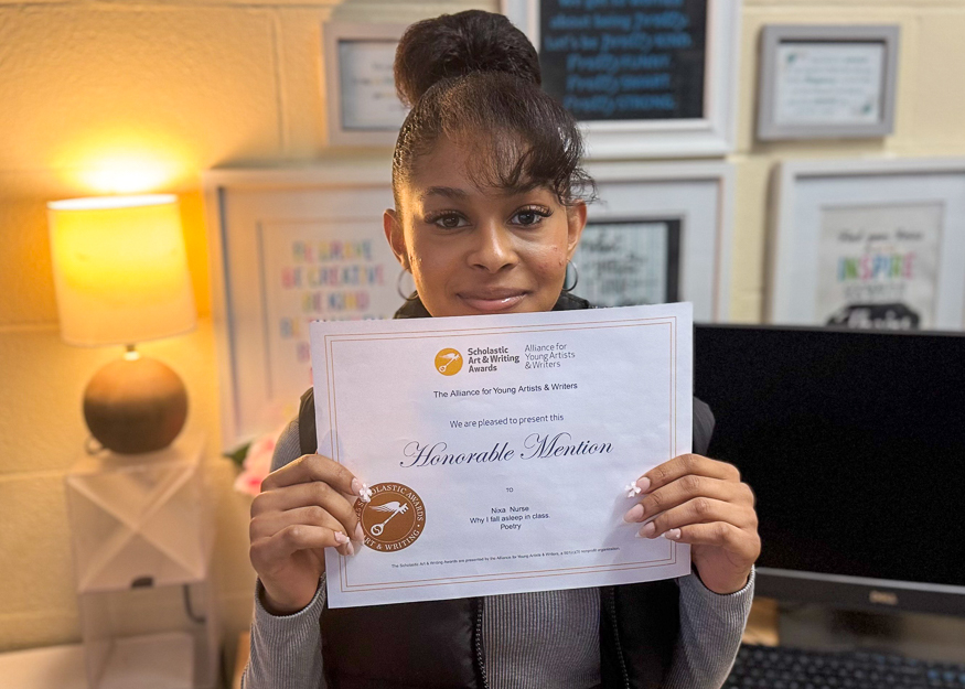 Congratulations to sophomore Nixa Nurse who received an Honorable Mention in the 2025 Scholastic Art & Writing Awards for her poem “Why I Fall Asleep in Class”.